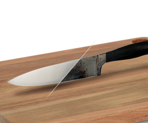 - Heel brought down and smoothed so entire edge contacts cutting board